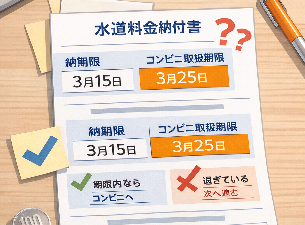 水道料金の支払い期限切れ|コンビニで払えるか「納付書の表示」で即判断する