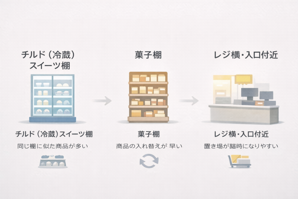 店頭での空振りは、在庫が無いだけではなく「売場を外している」ことでも起きます。単品販売は、とくに棚の場所がズレると一気に見つからなくなります。