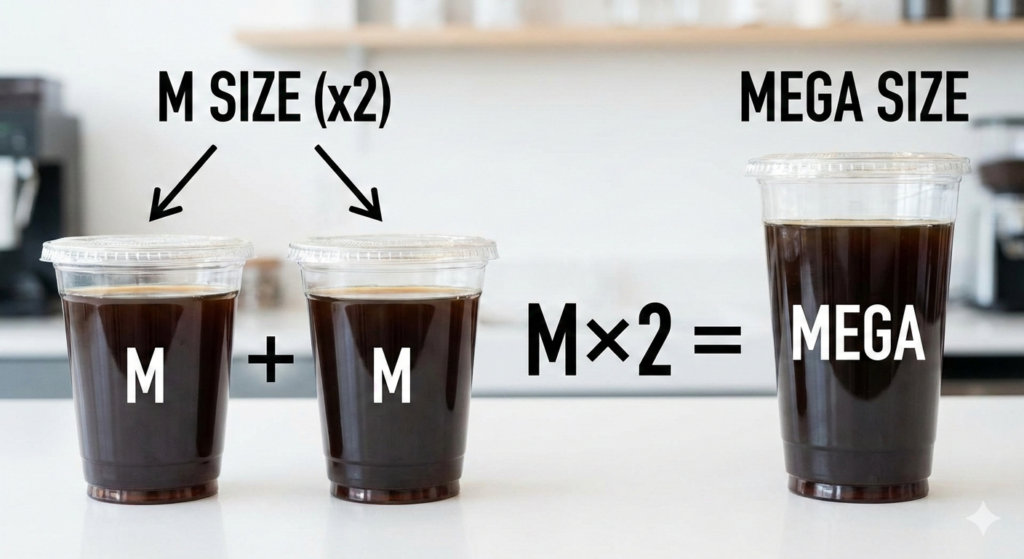 つまり、Lサイズを買うくらいなら、あと60円出してメガサイズにした方が、増量効率は圧倒的に高いのです。Mサイズを2杯買うよりも100円安く、Lサイズを2杯買うよりも200円安く済みます。この「浮いたお金」で、午後の仕事終わりの小さな贅沢が手に入ります。