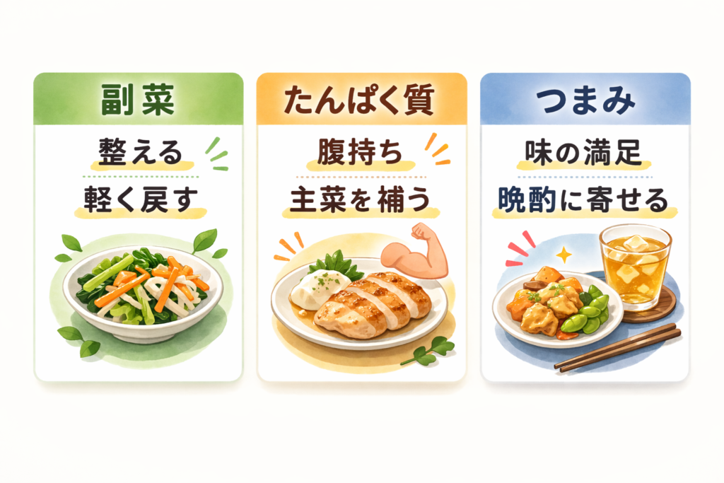 いま決めたいのは「食事に足す一品」なのか「つまみ」なのか