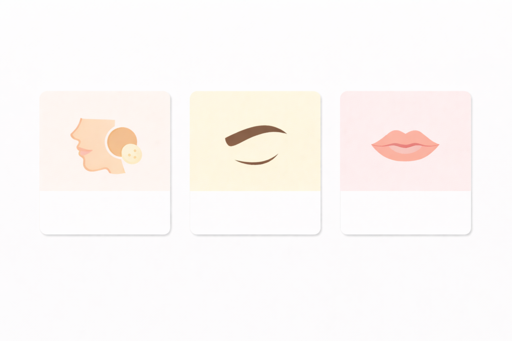 この順番が安心につながるのは、肌・眉・口元がそれぞれ「印象の土台」「顔の輪郭」「血色」を担っているからです。土台が崩れていると、輪郭や血色を足しても乗りません。輪郭が崩れていると、土台だけ整えても顔がぼんやりします。血色が抜けていると、土台と輪郭があっても疲れが残ります。順番は、いま崩れている役割から戻すための道順です。
