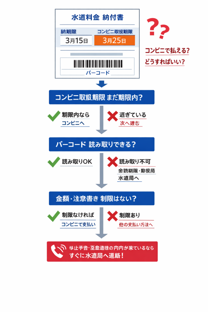 水道料金の支払い期限切れ|コンビニで払えるか「納付書の表示」で即判断する